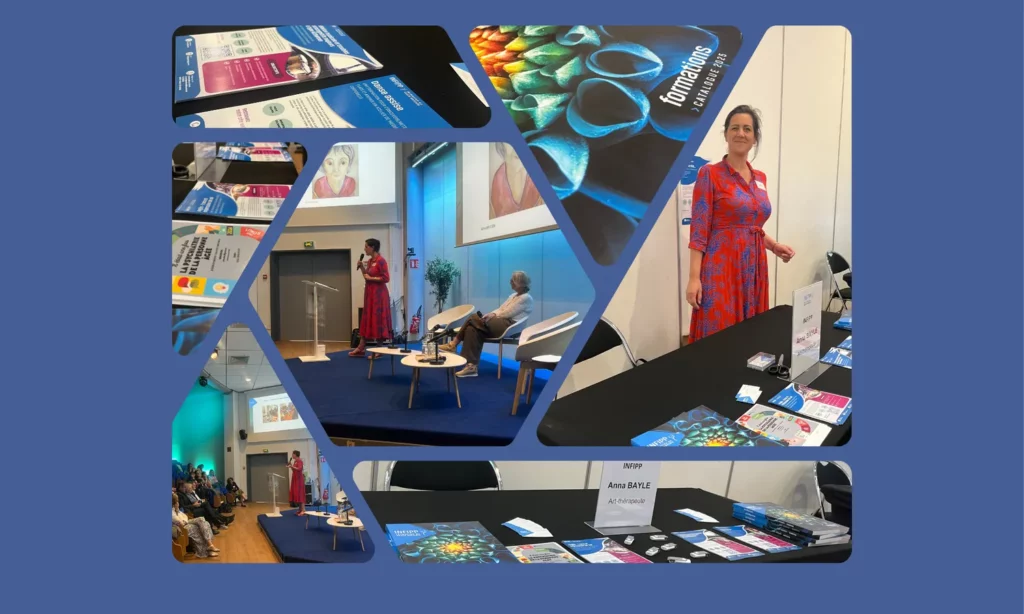 Cette journée a été rythmée par différentes conférences dont celle animée par Anna BAYLE, présidente et cheffe de projet à INFIPP mais aussi art thérapeute de métier qui est intervenue sur « Les médiations thérapeutiques au cœur du soin en gériatrie ».